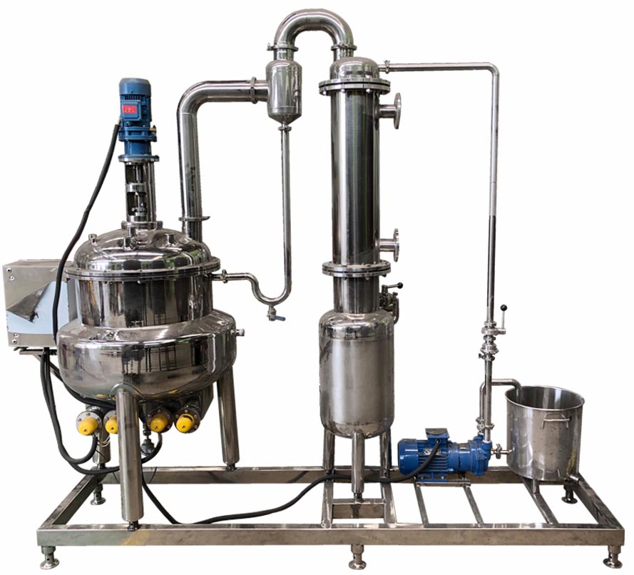 刮板濃縮罐由濃縮罐主體、冷凝器、冷卻器、氣液分離器、受液罐等組成。設備全部采用不銹鋼 304/316L 制造,具有良好的耐蝕性,外形